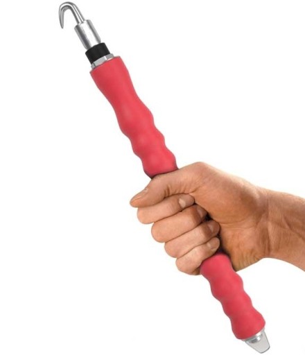 Silne pociągnięcie rękojeści powoduje trzykrotne obrócenie się haka i skręcanie zaczepionego na nim drutu.