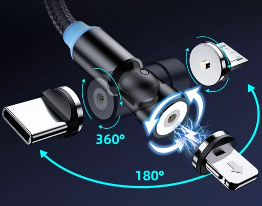 ✅ Magnetyczny kabel USB do ładowania telefonu Kompatybilny z Micro USB, Type-C, iOS 1M