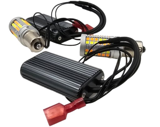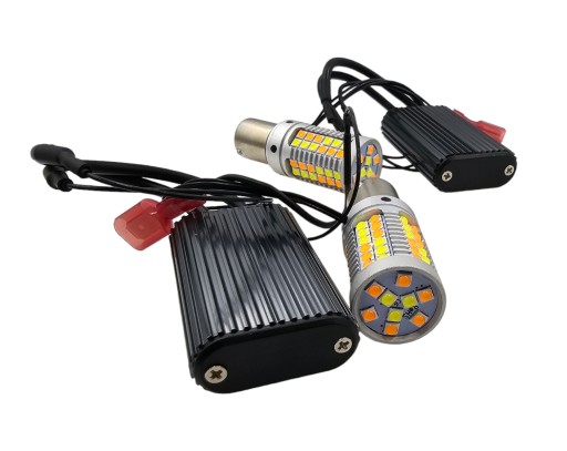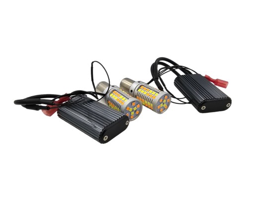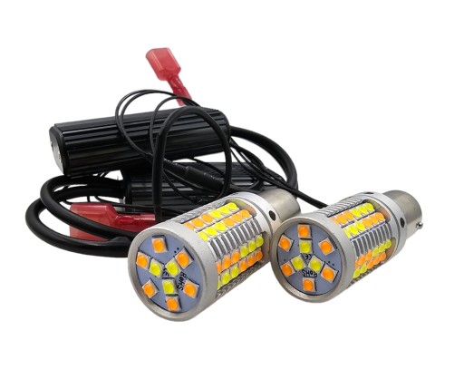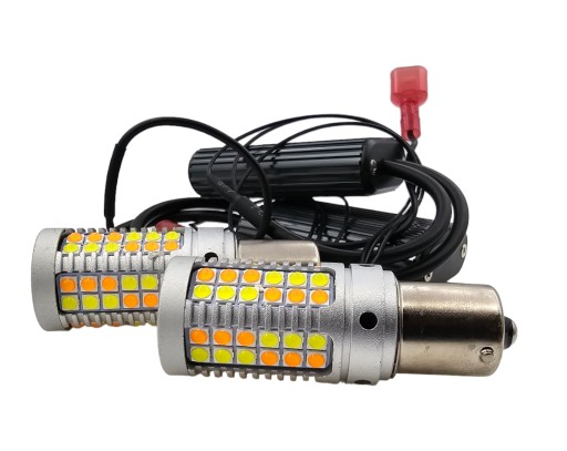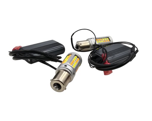 - 2x Żarówki DRL & TURN LIGHT LED z wtyczką pod gniazdo BA15S / P21W wtyczka ma bolce ułożone pod kątem 180 stopni, niesymetrycznie.