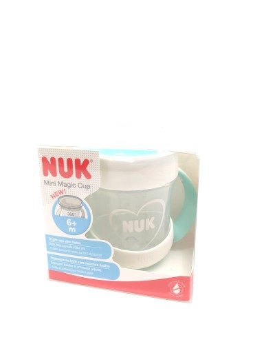 Kubek NUK Mini Magic Cup umożliwia nawet maluchom picie w sposób, w jaki piją duże dzieci. Ustnik 360° umożliwia picie z każdej strony kubka – prawie tak jak ze zwykłego kubka. Istnieje tylko jedna magiczna różnica: z kubka się nic nie wyleje; silikonowa tarcza uszczelnia kubek. Picie jest dla dziecka zabawą: wystarczy, że zacznie ssać przy krawędzi kubka.