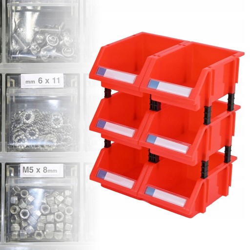6-częściowy pojemnik do przechowywania komponentów Walizka narzędziowa Organizer na śruby Przyciski Garaż Czerwony