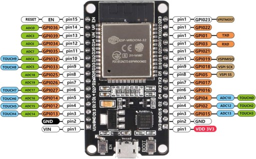 - Zgodny z: ESPHome, Arduino IDE, Espressif, NodeMCU, DevKit