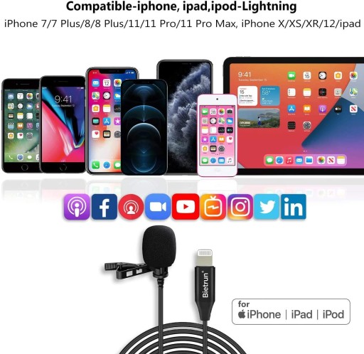 Idealny do nagrywania audio/wideo za pomocą urządzeń z systemem iOS: Mikrofon lavalier pomaga przesyłać czysty i wysokiej jakości dźwięk do wszystkich rodzajów urządzeń z systemem iOS bezpośrednio przez port Lightning. Kompatybilny z iPhone 12/12 Pro/12 Pro Max/12 mini, iPhone SE2/ iPhone 11/11 Pro/ 11 Pro Max, iPhone X/XR/XS/XS Max, iPhone 8/8Plus, iPhone 7/ iPhone 7Plus, iPod dotykowy/ iPad mini, iPad Pro/ iPad Air.