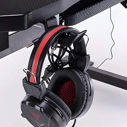Wieszak wyróżnia się ostrym i dynamicznym wzorem. Pasuje idealnie do profesjonalnych biurek gamingowych. Delikatnie chropowata powierzchnia i matowe wykończenie zapobiegają tworzeniu się rys, nadając jednocześnie efektowny wygląd.