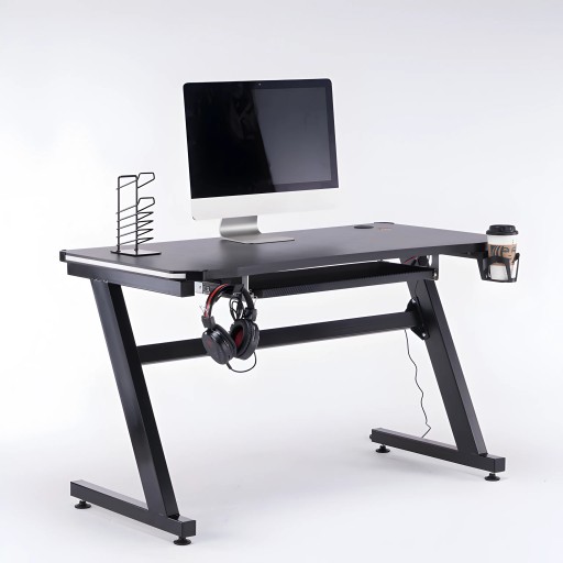 - wyróżnia się nowoczesnym wyglądem, pasującym idealnie do biurek gamingowych