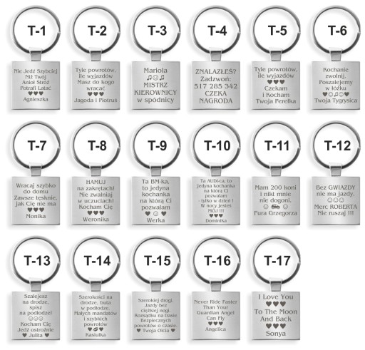 PERSONALIZACJA - grawer na tylnej stronie breloczka (opcje wyboru):