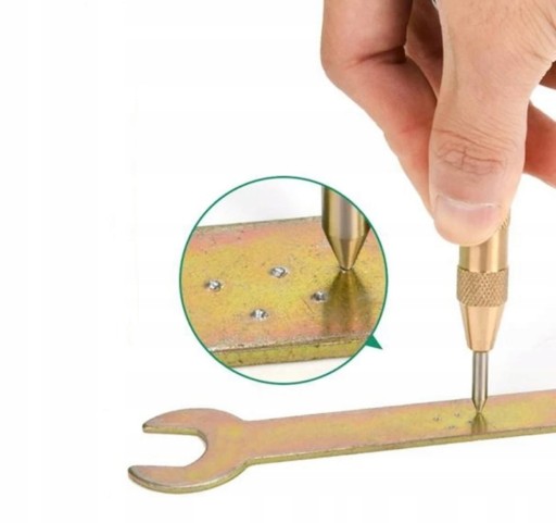 Przycisnąć punktak ostrym końcem do powierzchni i mocno nacisnąć . Spowoduje to uderzenie iglicy i konkretne zaznaczenie punktu.