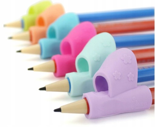 Edukacyjny Element: Specjalny kształt nakładek wspomaga prawidłowe trzymanie ołówka, co jest kluczowe dla poprawnego rozwijania umiejętności pisania.