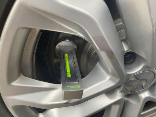 Magnetyczne narzędzie pomiarowe, umożliwia regulację w celu utrzymania prawidłowego ustawienia kół, a nawet zużycia opon