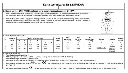 HAK SKRACAJĄCY Z UCHEM I ZABEZPIECZENIEM 10MM G8 WLL3.15T