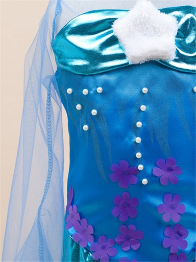 Przód kostiumu bogato zdobiony perełkami, kwiatuszkami oraz akcentami z morskich głebin. Na górze biała rozgwiazda.