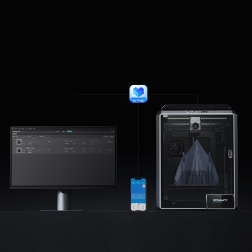K1 może drukować z dysku USB lub Wi-Fi. Jeśli istnieje połączenie sieciowe, drukarka FDM może być zdalnie sterowana i monitorowana za pomocą aplikacji/aplikacji internetowej Creality Print lub Creality Cloud. Sterowanie klastrem jest również możliwe, jeśli kilka drukarek K1 jest online. Pamiętaj, że do zdalnego monitorowania potrzebujesz (opcjonalnej) kamery AI.