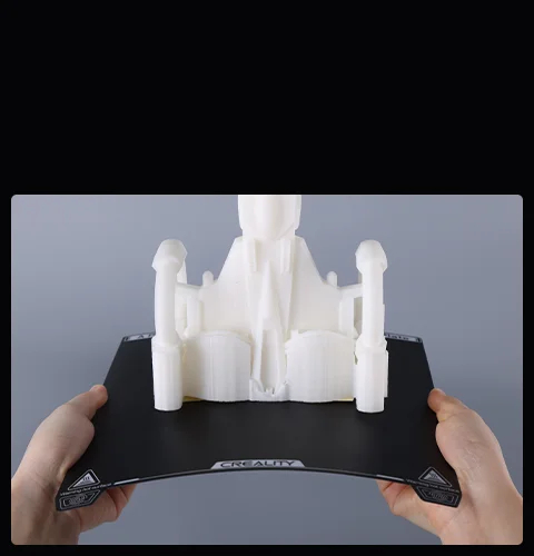 Wydrukowany model można łatwo usunąć z elastycznej platformy roboczej poprzez jej wygięcie. Po zdjęciu modelu płyta wraca na swoje pierwotne miejsce.