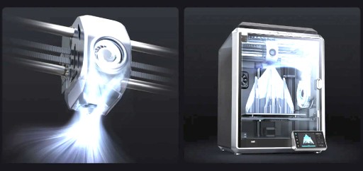 - hotend drukarki K1 Max wyposażony został w nową, ceramiczną grzałkę. Nagrzewa się ona do 200°C w zaledwie 40 sekund i natychmiast topi filament.