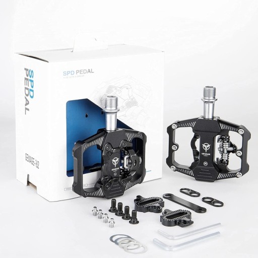 - Dwustronny pedał rowerowy z tradycyjną platformą z jednej strony; i SPD z drugiej strony. Używaj z butami rowerowymi SPD (w zestawie z uszczelką*2) lub zapinaj je na zatrzaski, używając zwykłych butów ulicznych, 6 antypoślizgowych bolców ze stali nierdzewnej skutecznie zapobiega zsuwaniu się butów, niezależnie od pozycji, w jakiej umieścisz stopy.