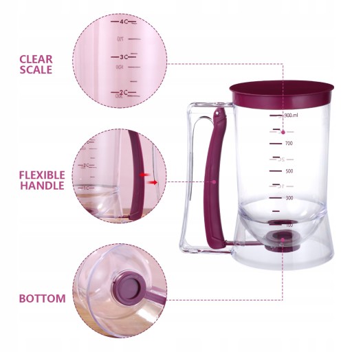 Gofry, babeczki, ciasto/ciasto brownie, a nawet sos do pizzy idealnie pasują do naszego zaworu dozującego, oferując wszechstronność pozwalającą wykorzystać wyobraźnię i kontrolować mieszanki piekarnicze na patelni do naleśników, gofrach i misce do mieszania. Jeśli jest zbyt gęsty, po prostu dodaj trochę więcej płynu i będzie działać idealnie. Ta naleśnikarka jest również wyposażona w system łatwych uchwytów.