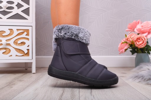 Damskie, zimowe śniegowce w kolorze beżowym lub szarym lub czarnym( kolor wybierany losowo ) . Posiadają ocieplenie w postaci ciepłego futerka. Zapięcie na zamek umożliwia łatwe zakładanie. Posiadają wodoodporną, solidną, grubą piankową podeszwę izolującą od zimna. �