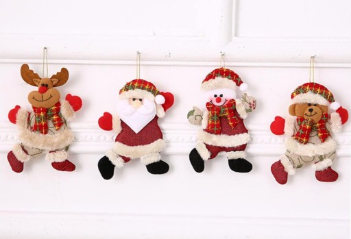 ЕЛОЧНЫЕ КУЛОНЫ, НАБОР УКРАШЕНИЙ: Мишка Тедди Олень Дед Мороз Снеговик 4 шт.