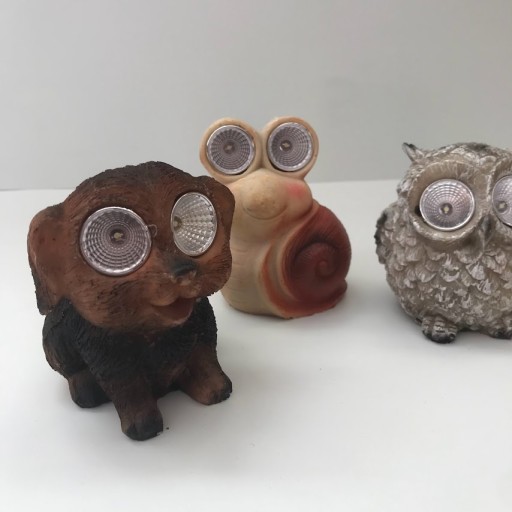 Dzięki wesołej figurce w ogrodzie będzie jeszcze przytulniej. Jej oczy nastrojowo świecą wieczorem.