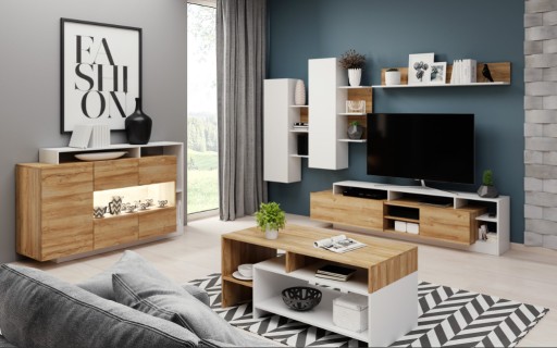 Kolor 2: Dąb grandson + Biała (meblościanka / komoda / stolik kawowy)