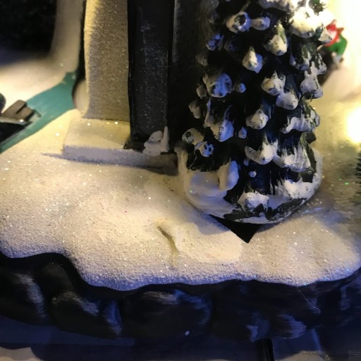 Ruchome elementy stoku, oświetlenie LED i funkcja odtwarzania muzyki są zasilane trzema bateriami AA (do kupienia osobno), co umożliwia ustawienie wioski w dowolnym miejscu, bez szukania gniazda sieciowego.