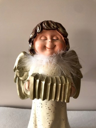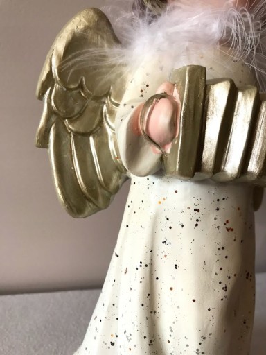 Znajdź miejsce w domu na śliczną figurkę aniołka, a natychmiast poczujesz atmosferę Świąt. Puchaty szalik i urocze brokatowe detale na pewno Cię rozweselą.