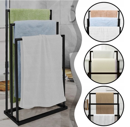 ✅ Różne wysokości ramion stojaka: Stojak jest wyposażony w trzy ramiona umieszczone na różnych wysokościach, co pozwala na zawieszenie ręczników o różnych długościach. To praktyczne rozwiązanie, które umożliwia szybkie schnięcie ręczników.