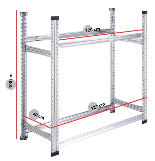 Rozstaw perforacji co 33 mm, co oznacza, że samodzielnie można ustalić położenie belek - poziomu składowania, w zależności od preferencji użytkownika, przy czym maksymalny rozstaw poziomów wynosi 70 cm.