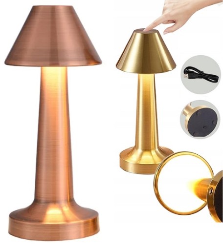 LAMPKA NOCNA STOŁOWA LED RGB USB DO SYPIALNI BIURA DOTYKOWA MIEDŹ PREZENT