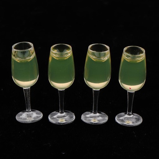 6 sztuk stół kuchenny dla lalek w skali 1/12, pub, akcesoria barowe, w tym 2 sztuki butelek wina i 4 sztuki kielichów.