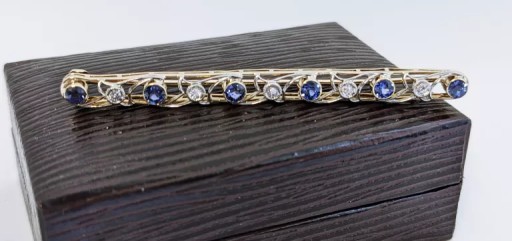 Przedmiotem sprzedaży jest piękna broszka z centralnie osadzonymi pięcioma brylantami wykonana z żółtego złota.