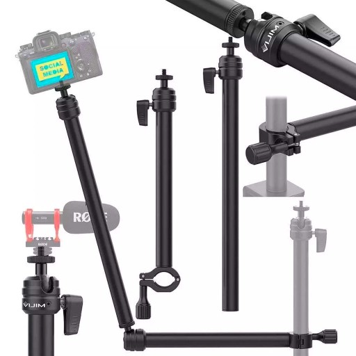✔️ WSZECHSTRONNE ZASTOSOWANIE - można nim przymocować lampy błyskowe, aparaty, mikrofony, albo inne akcesoria, ma uniwersalny gwint 1/4" Ramie jest kompatybilne z podstawą Vijim LS01.