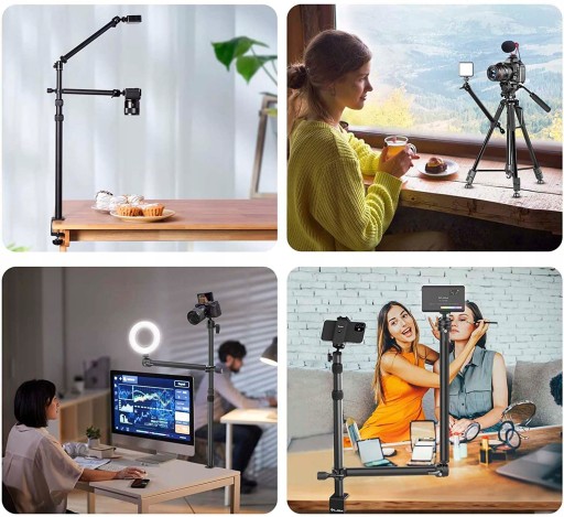 Uniwersalny statyw dzięki któremu umieścisz lampę, aparat, mikrofon, lub oświetlenie studyjne . Długie ramię pozwala ustawić sprzęt jak ci wygodnie. Możesz na nim umieścić aparat np. obiektywem w dół albo ponad swoimi notatkami czy ekranem komputera.