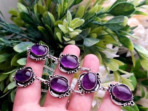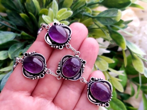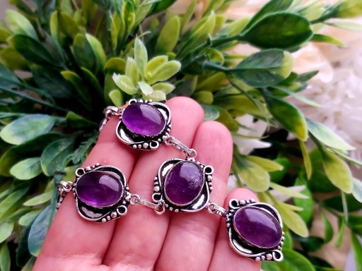 Zrobiono z indyjskiego srebra(ze stopu srebra i miedzi).Centrum zdobi oprawiony naturalny Ametyst. Ręczne wykonanie indyjskiego jubilera.