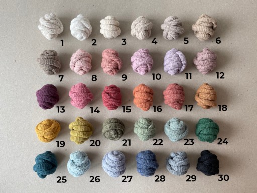 1 – naturalny z drobinkami, 2 – złamany biały, 3 – ecru, 4 – jasny beżowy, 5 – zimny beżowy, 6 – beżowy, 7 – kawowy, 8 – pudrowy, 9 – brzoskwinioworóżowy, 10 – lila róż, 11 - delikatny fiolet, 12 – wrzosowy, 13 – jagodowy, 14 – kwiatowy, 15 – dzika róża, 16 – rudy, 17 – ceglasty, 18 – karmelowy, 19 – musztardowy, 20 – kiwi, 21 – khaki, 22 – jasnozielony, 23 – laurowy, 24 – zielony, 25 – niebieskozielony, 26 – błękitny, 27 – jasny niebieski, 28 – ciemny niebieski, 29 – stalowy, 30 – czarny