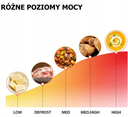 5 ustawień mocy - Zapewnia większą elastyczność gotowania, od utrzymywania ciepła potraw po ciepłe napoje.