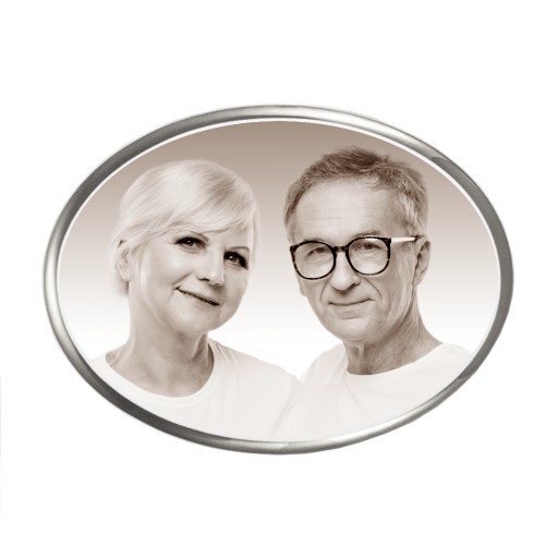 Zdjęcie na porcelanie w kształcie owalnym w odcieniu sepi ze srebrną ramką