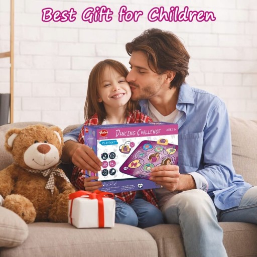 Mata do tańca dla dzieci ma wymiary 9,4 x 93 cm. Można go łatwo złożyć i włożyć do torby lub walizki. Dzieci mogą bawić się wewnątrz lub na zewnątrz, jest to doskonała gra dla dziewczynek i chłopców na rodzinne uroczystości lub wycieczki.