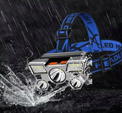 Latarka czołowa LED XPE z aż 9 mocnymi diodami. Obudowa wykonana została z trwałego tworzywa sztucznego. Latarka posiada mocne źródło światła - 9x dioda LED XPE o żywotności aż do 100 000h. Solidny, mocny uchwyt zapewnia wygodę obsługi. Urządzenie wykorzystuje wbudowany akumulator, który możemy łatwo naładować za pomocą dołączonego kabla USB. Latarka jest również wodo i wstrząsoodporna. Włącznik jest zabezpieczony solidną gumą, a zastosowane o-ringi zabezpieczają urządzenie przed dostaniem się brudu i kurzu.