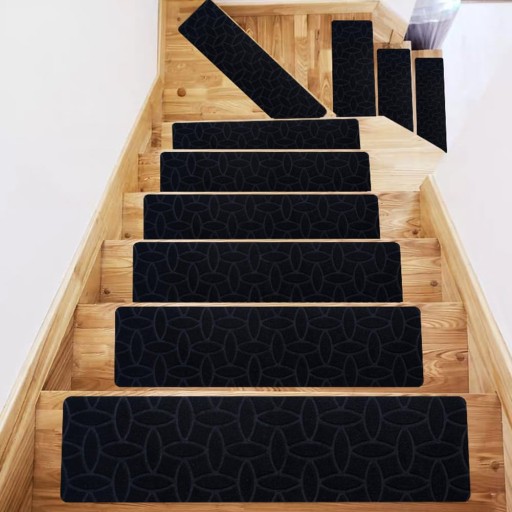 Antypoślizgowa i chroniona Twoje schody: Mata na schody i uszkodzenia powierzchni schodów, a także może ozdobić schody. Antypoślizgowy spód zapewnia dobrą przyczepność i tarcie, używanemu poślizgu się lub upadkowych dzieci, osób starszych i zwierząt domowych.