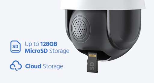 Nagrywaj filmy na karcie microSD (do 128 GB), bez miesięcznych opłat za przechowywanie w chmurze.