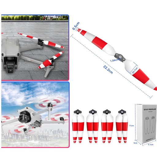 📏🔴 Specyfikacje Techniczne: Śmigła o rozmiarze 8.7 cala i skoku 4.3 cala, wykonane z plastiku. Doskonale pasują do DJI Air 3. 🚁🔩