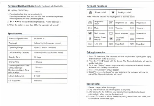 Nasza klawiatura waży mniej niż 300 gramów, dzięki czemu jest lekka i przenośna, idealna do podróży lub pracy w podróży służbowej. W zestawie znajduje się kabel USB-USB Type-C przeznaczony do ładowania klawiatury oraz instrukcja użytkownika w formacie PDF.