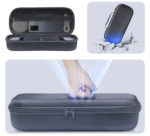 Futerał z zewnątrz pokryty został specjalnym, sztywnym materiałem, dzięki czemu doskonale chroni umieszczone wewnątrz akcesoria nawet w najtrudniejszych warunkach.