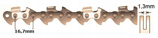 - Otwory smarowne w ogniwach prowadzących łańcucha tnącego pomagają rozprowadzić olej na całej długości rowka prowadnicy