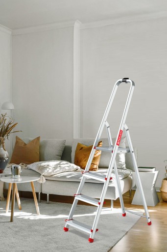 Dodatkowo, nasza drabinka 4 stopniowa po złożeniu zajmuje niewielką przestrzeń, co ułatwia transport oraz przechowywanie jej w dowolnym kącie domu.