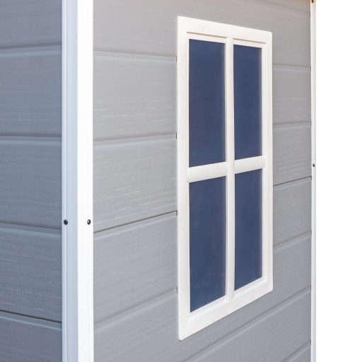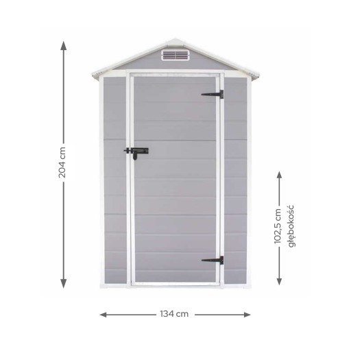 - konstrukcja domku jest odporna na promieniowanie UV i wilgoć, co korzystnie wpływa na trwałość schowka w różnych warunkach pogodowych