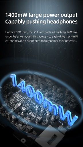 - Potężna Moc Wyjściowa: FiiO K11 generuje 1400 mW mocy, napędzając słuchawki HiFi do pełni ich potencjału.