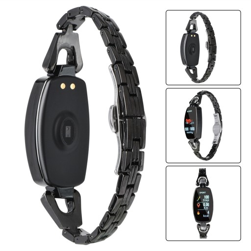 Wodoodporny kolorowy ekran Kobiety Smarts Sportowa bransoletka fitness Tętno Ciśnienie krwi (czarny)