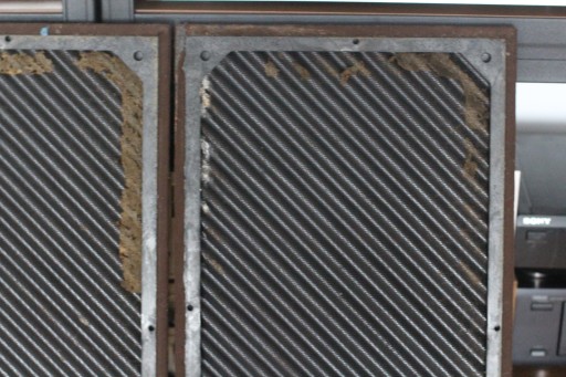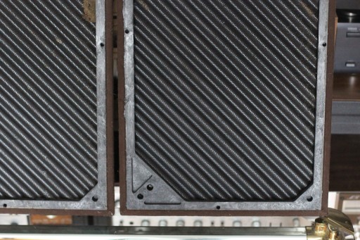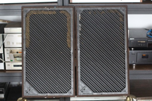 Oryginalne maskownice do głośników JBL L 50 . Maskownice całe bez dziur . Jedna z maskownic z jednej strony ma białą smugę ( nie jest to przetarcie ) . Maskownice nie były naprawiane , całe w oryginale .